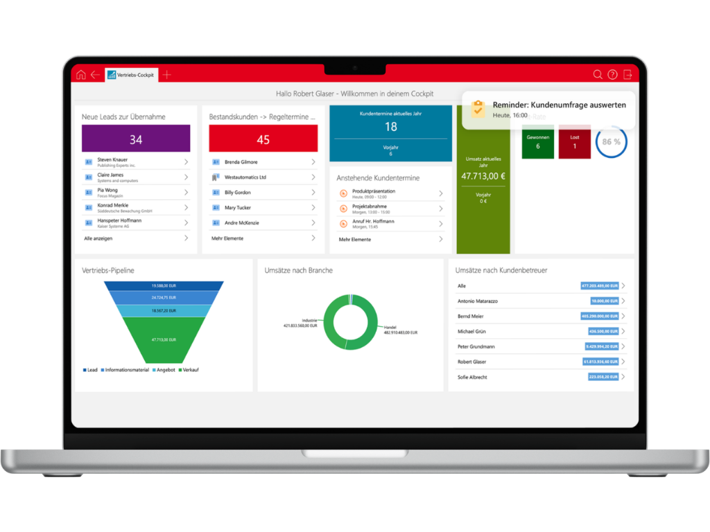 Der komplette Vertriebsprozess digitalisiert: vom Ersttermin über Verkaufschancen zu Aufträgen. Mit automatisierten Workflows steigern Sie nachweislich Forecasts & Abschlussquoten.